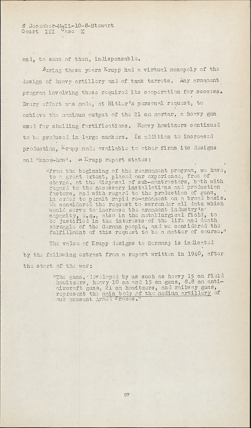 "The guns, developed by us such as heavy 15 cm field howitzers, heavy 10 cm and 15 cm guns, 8.8 cm anti aircraft guns, 21 cm howitzers, and railway guns, represent the main body of the medium artillery of --------------------------------our present Armed Froces."
