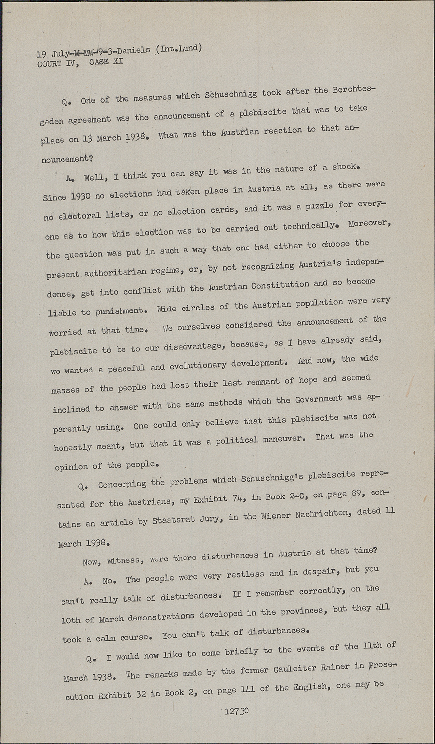 Q.Concerning the problems which Schuschnigg's plebiscite represented for the Austrians, my Exhibit 74, in Book 2-C, on page 89, contains an article by Staatsrat Jury, in the Wiener Nachrichten, dated 11 March 1938.