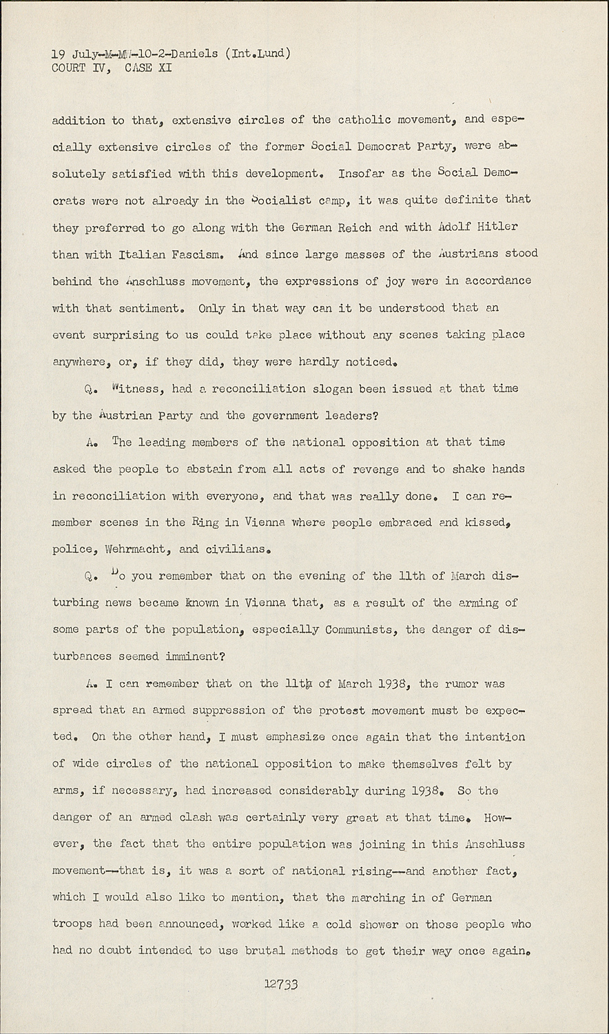 Q.How do you explain, Herr Reinthaller, that this change took place so calmly, in spite of the great bitterness of the national circles which you mentioned before?