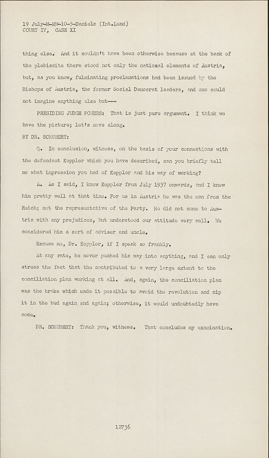 Q.In conclusion, witness, on the basis of your connections with the defendant Keppler which you have described, can you briefly tell me what impression you had of Keppler and his way of working?