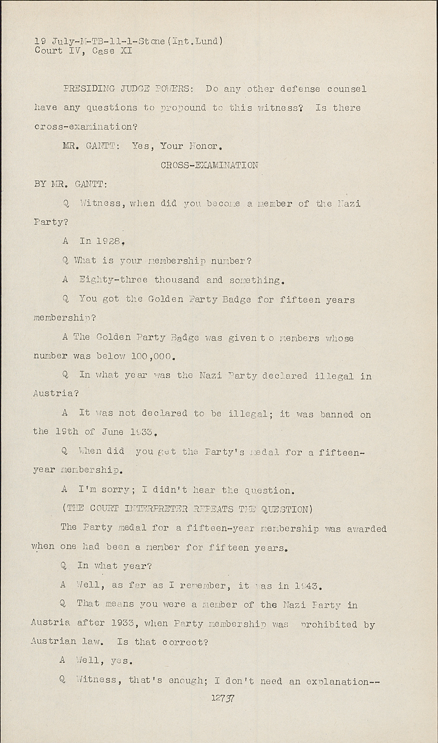 MR. GANTT:That is exactly the question as I understood it before that defense counsel was asking. I object to this question because it is irrelevant. The events of the 12th of March 1938 are not charged.