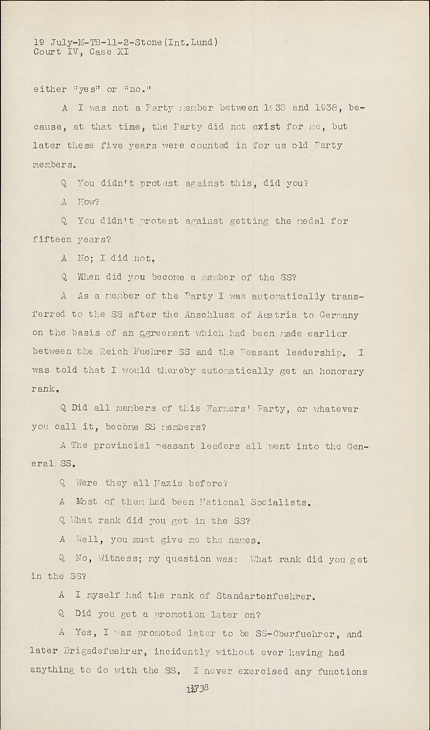 AAs a member of the Party I was automatically transferred to the SS after the Anschluss of Austria to Germany on the basis of an agreement which had been made earlier between the Reich Fuehrer SS and the Peasant leadership. I was told that I would thereby automatically get an honorary rank.