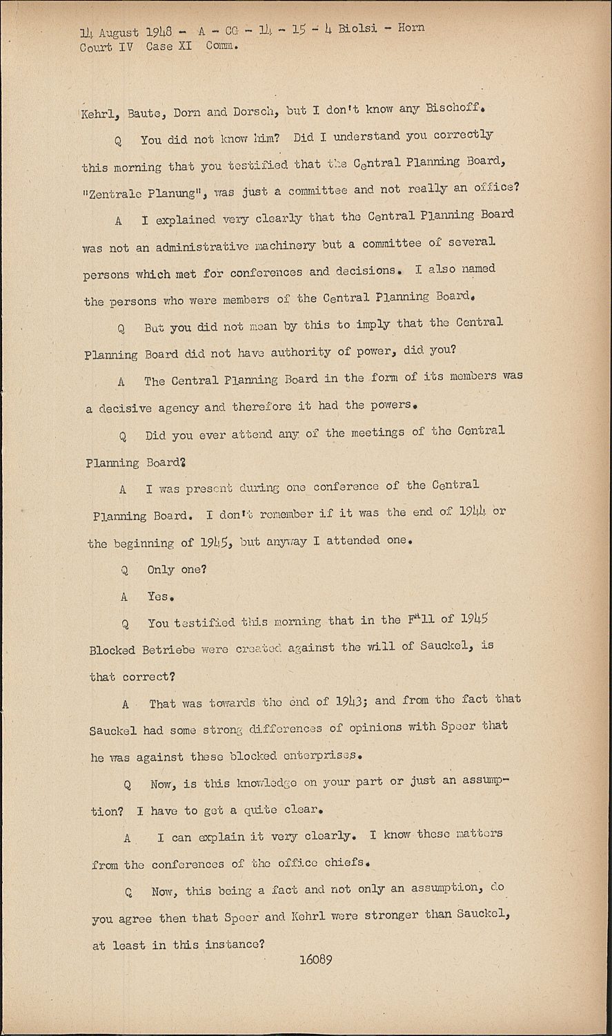QYou did not know him? Did I understand you correctly this morning that you testified that the Central Planning Board, "Zentrale Planung", was just a committee and not really an office?