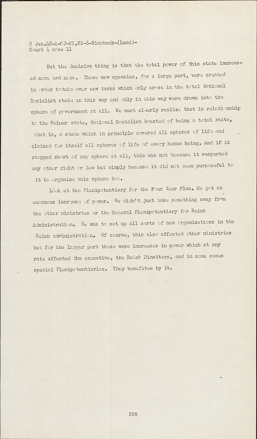 Of course, this also affected other ministries but for the larger part these were increases in power which at any rate affected the executive, the Reich Minsiters, and in some cases special Plenipotentiaries. They benefites by it.