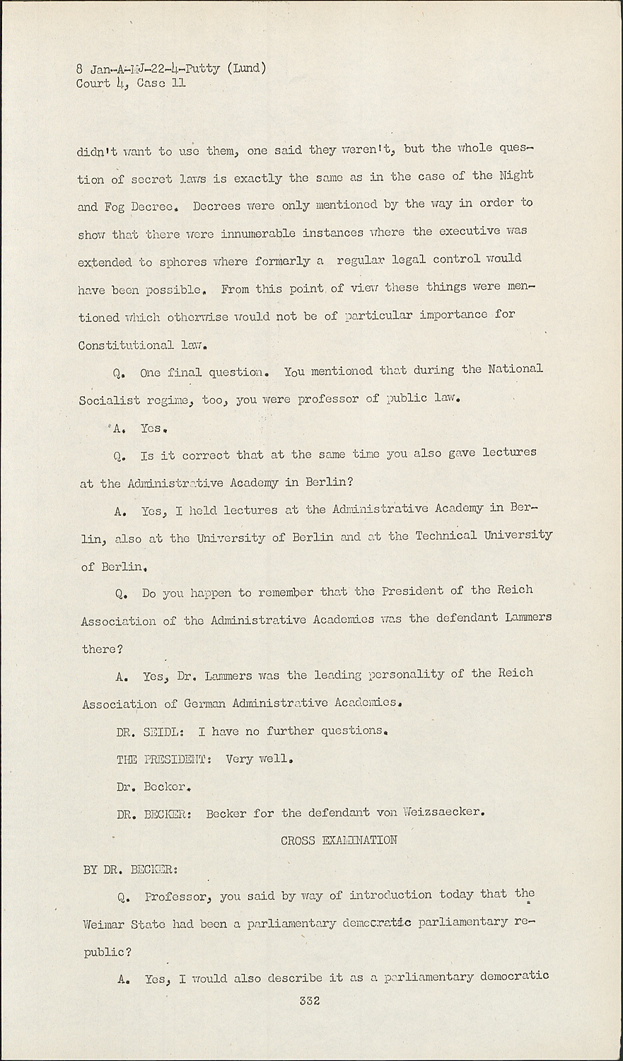 Q.Do you happen to remember that the President of the Reich Association of the Administrative Academies was the defendant Lammers there?