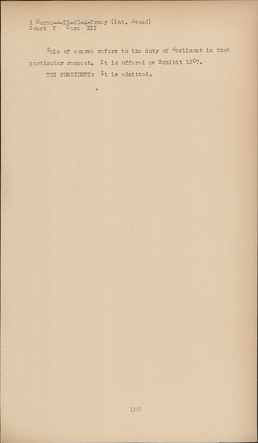 This of course refers to the duty of Warlimont in that particular respect. It is offered as Exhibit 1207.