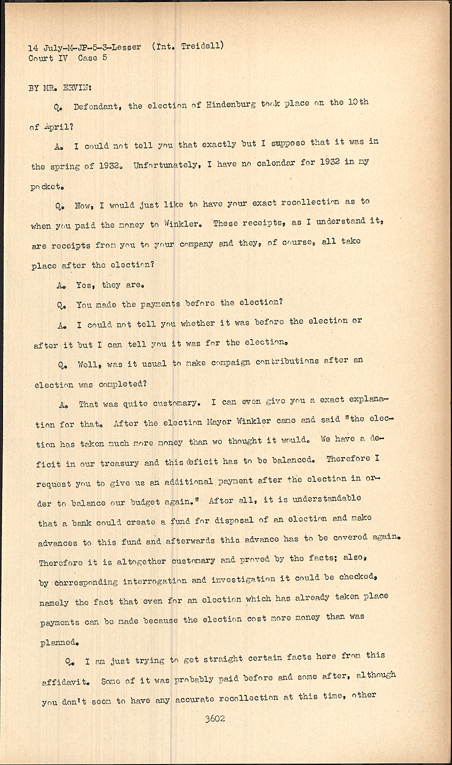 A.Yes, it gives some indication; that's true. According to my recollection I'm sure that in 1932 that was paid before the election of Hindenburg versus Hitler.