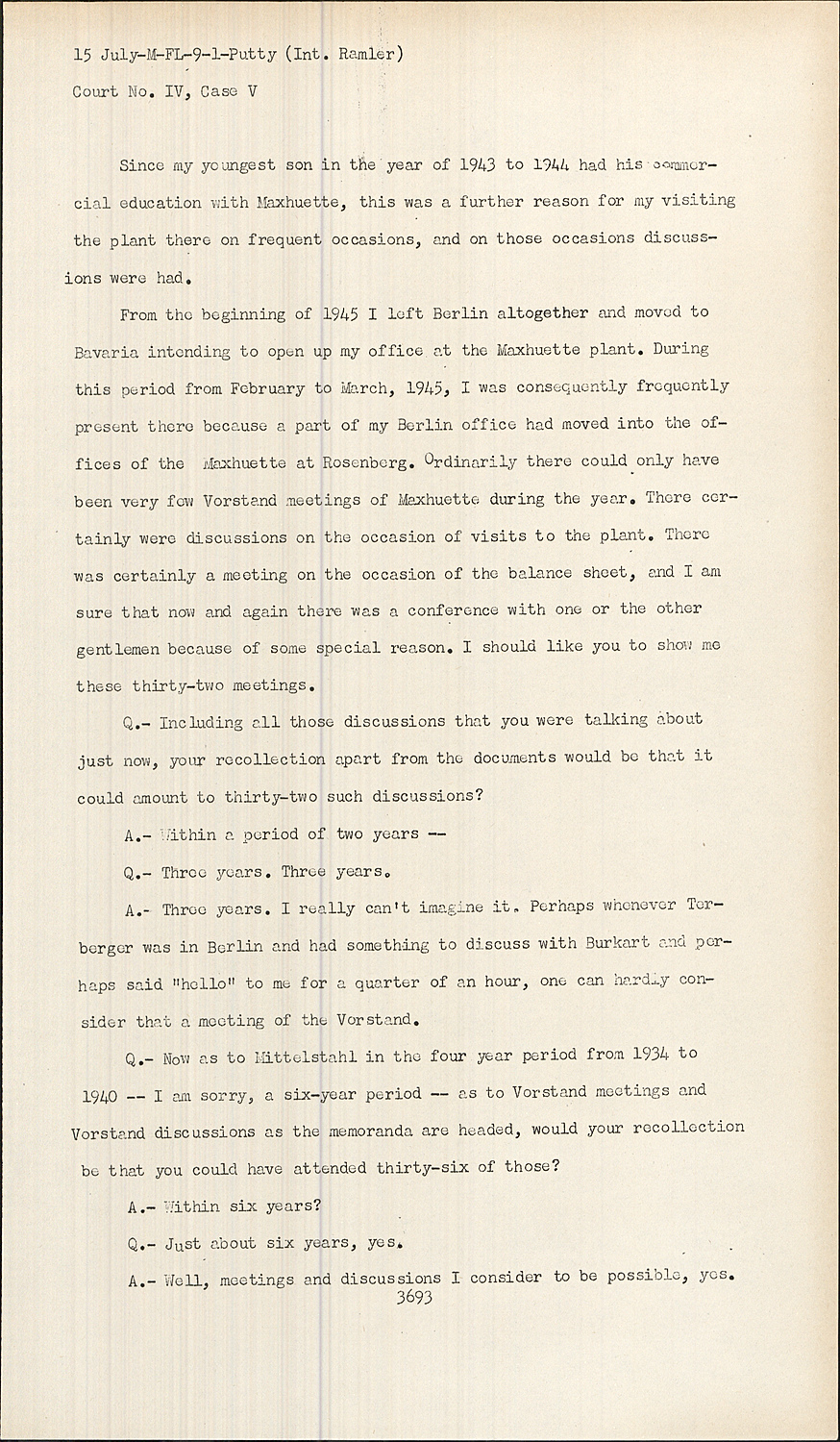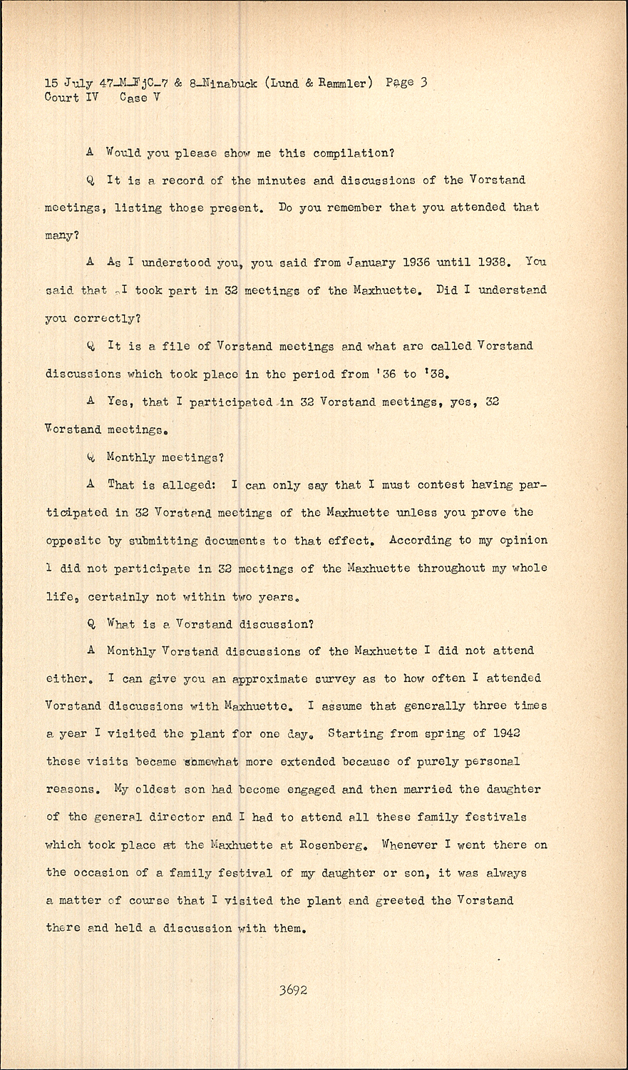 AAs I understood you, you said from January 1936 until 1938. You said that I took part in 32 meetings of the Maxhuette. Did I understand you correctly?