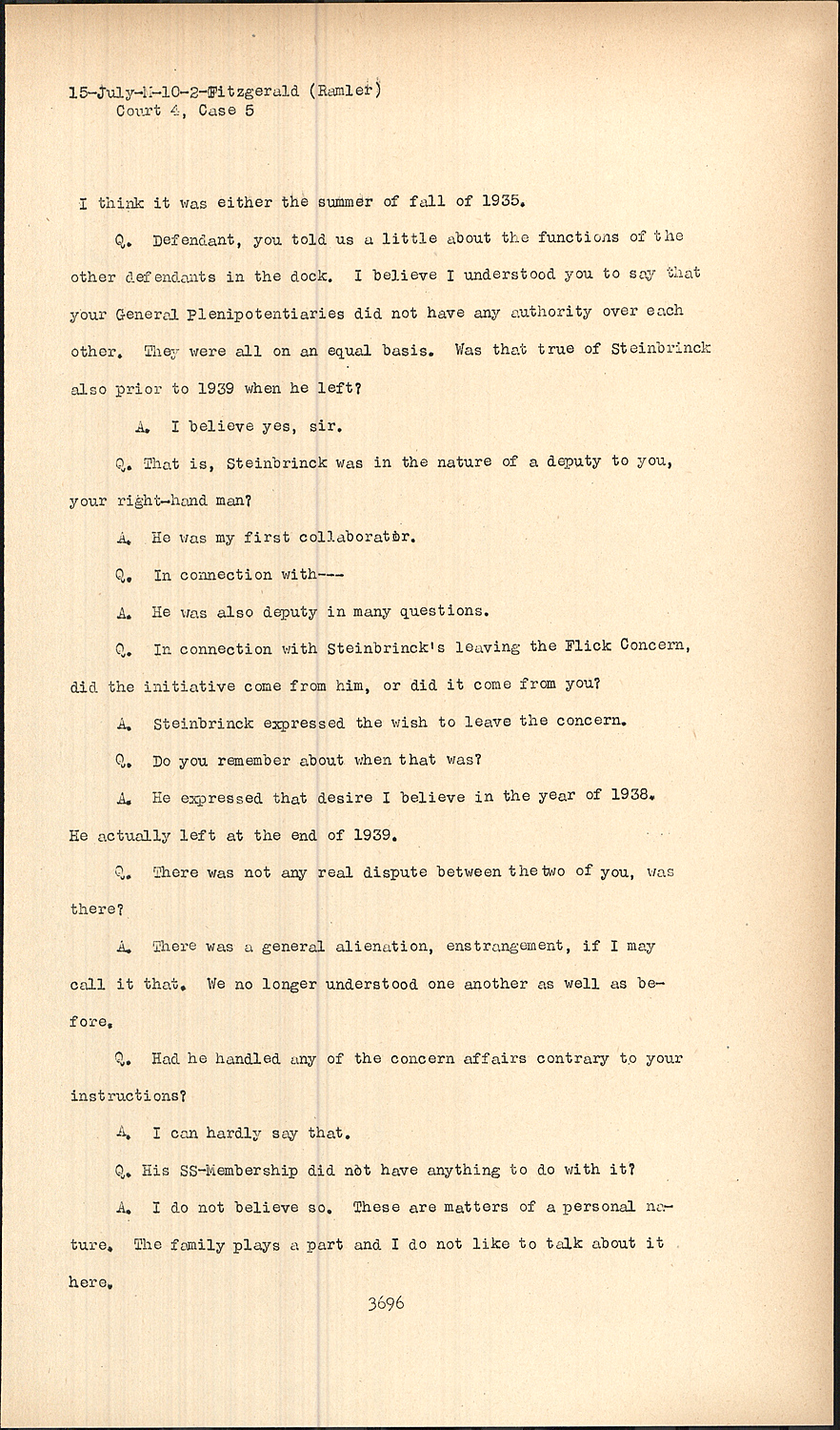 Q.In connection with Steinbrinck's leaving the Flick Concern, did the initiative come from him, or did it come from you?
