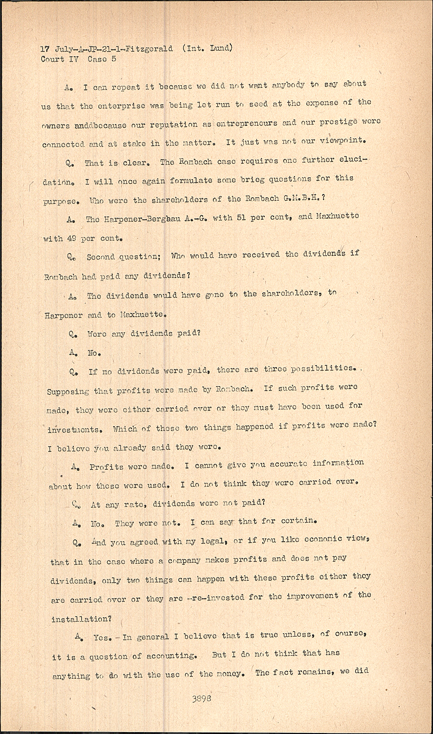 Q.If no dividends were paid, there are three possibilities. Supposing that profits were made by Rombach. If such profits were made, they were either carried over or they must have been used for investments. Which of these two things happened if profits were made? I believe you already said they were.