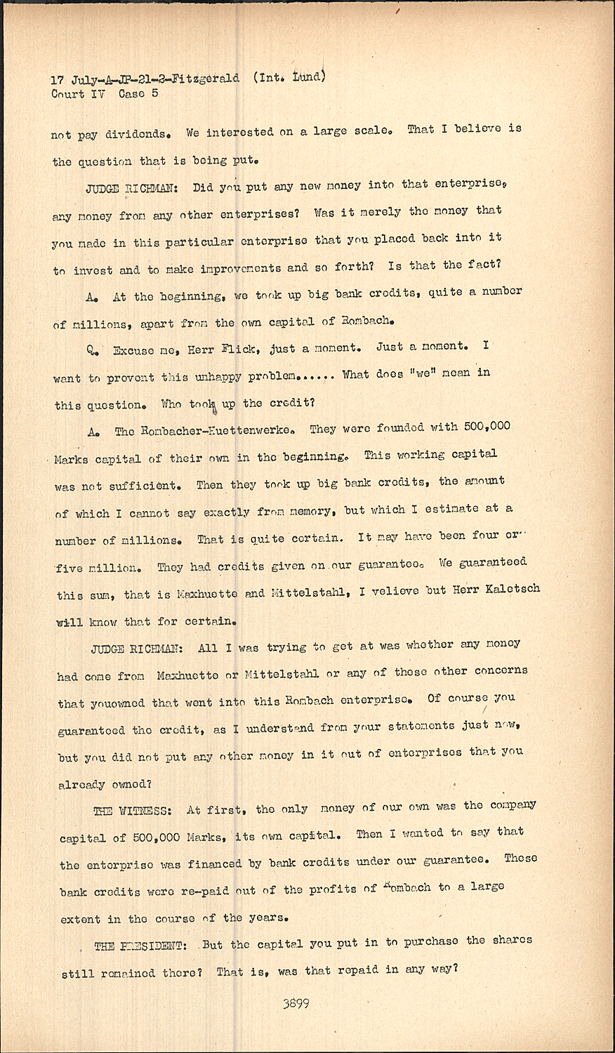Q.Excuse me, Herr Flick, just a moment. Just a moment. I want to prevent this unhappy problem..... What does "we" mean in this question. Who took up the credit?
