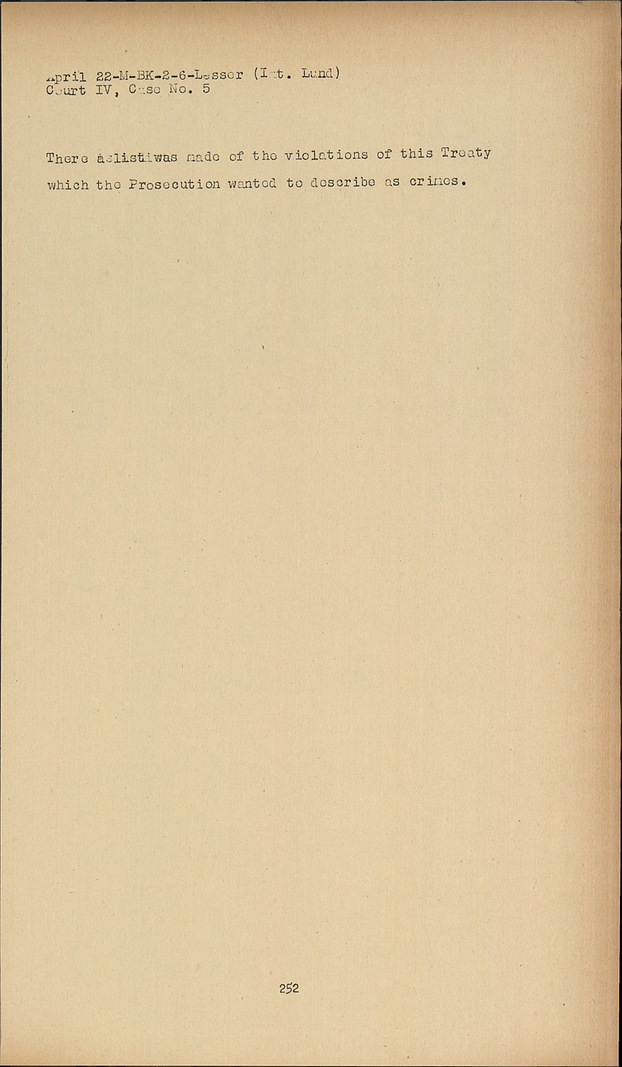 There a list was made of the violations of this Treaty which the Prosecution wanted to describe as crimes.