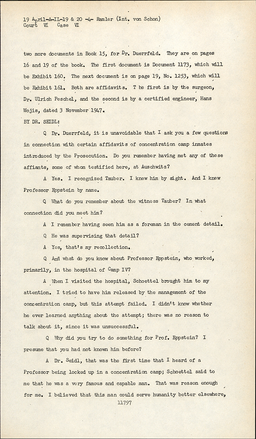 ADr. Seidl, that was the first time that I heard of a Professor being locked up in a concentration camp; Schoettel said to me that he was a very famous and capable man. That was reason enough for me. I believed that this man could serve humanity better elsewhere, rather than in a hospital of a concentration camp.