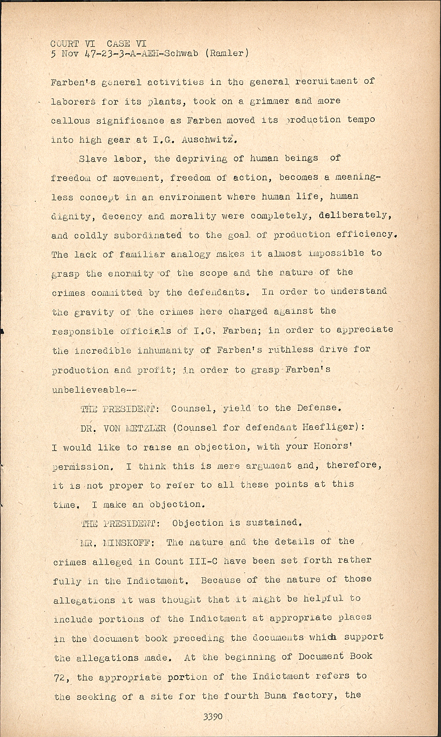 DR.GATHER (Counsel for Defendant Ambros): I should also like to object to the statements made by the Prosecution up to this time. This obviously was pure argumentation and not submission of evidence.